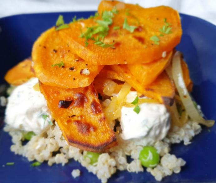 Lägg bataten på plåt i ugnen på 200 grader i ca 20min