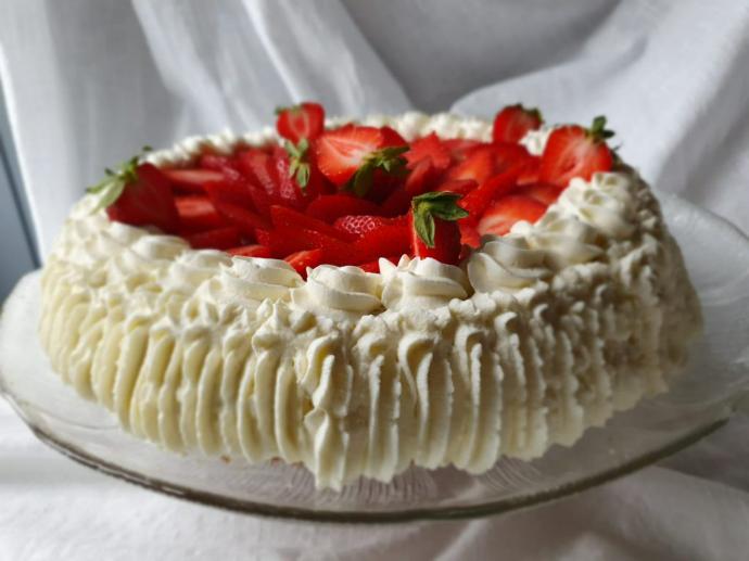 Innehåller: efterrätt, jordgubbar, tårta
