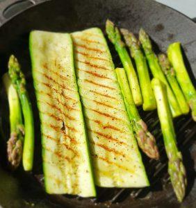 Vi grillade zucchini och sparris i vårt senaste loppisfynd, grillstekpanna, det går lika bra att grilla på en vanlig grill.